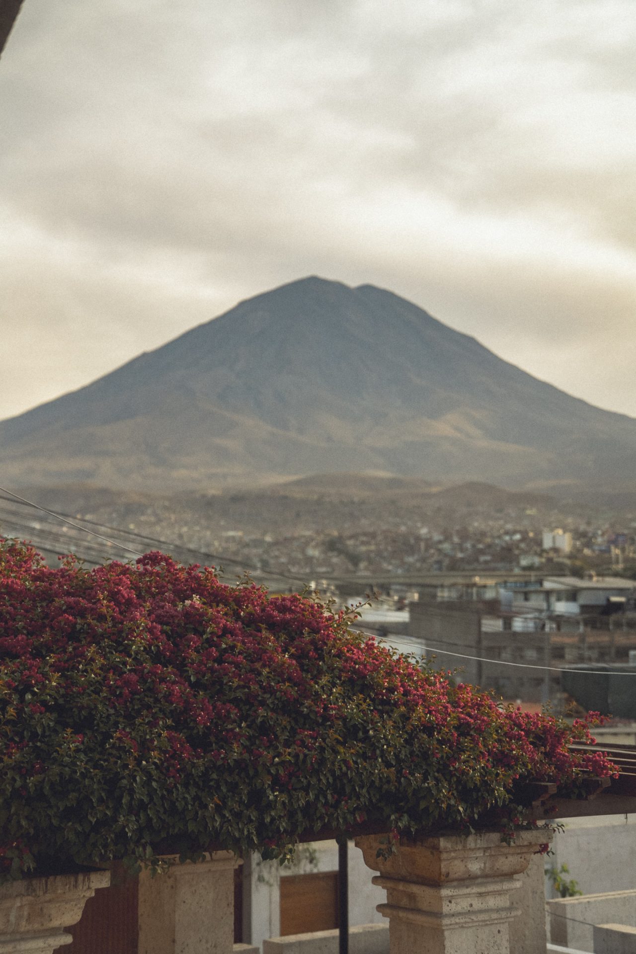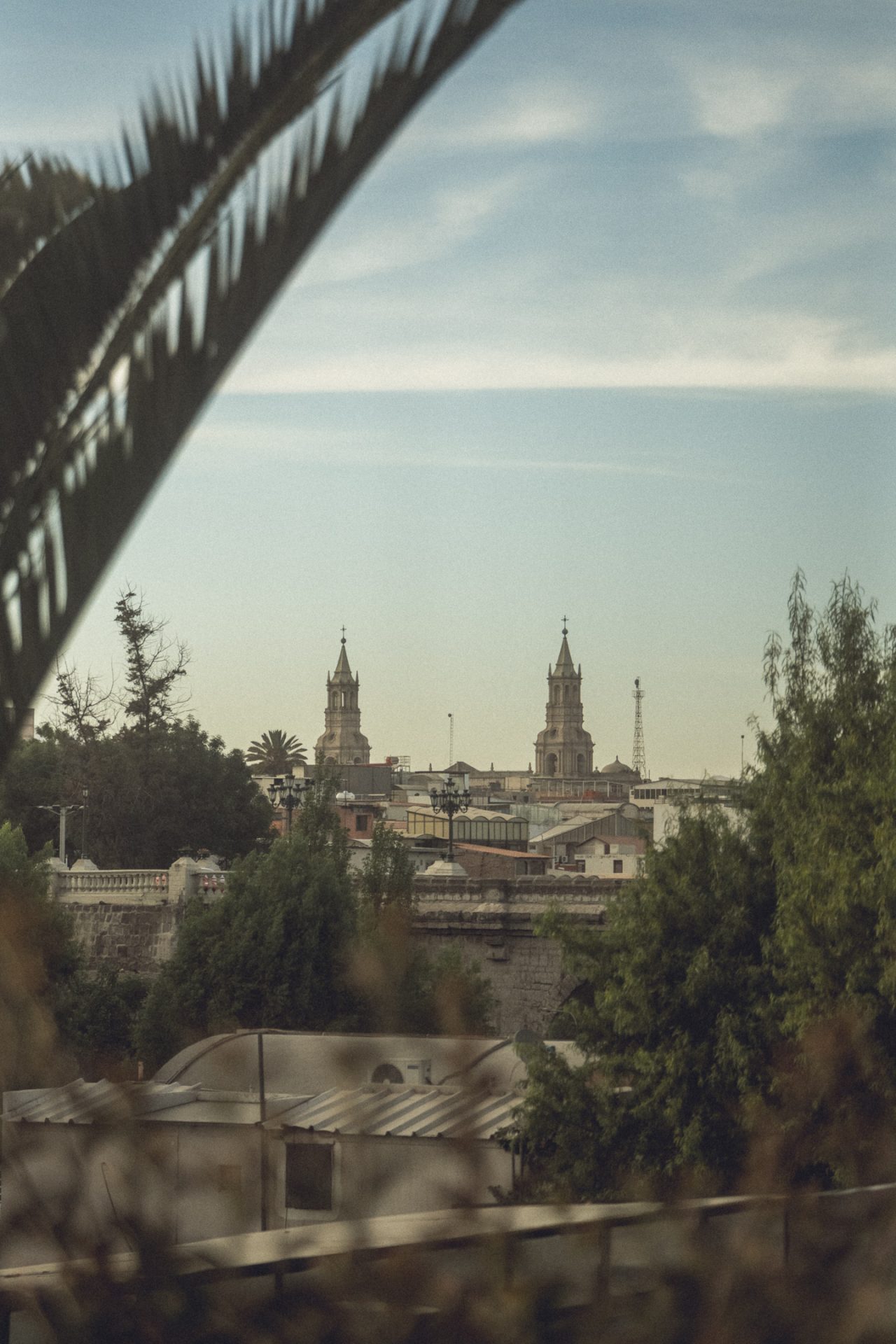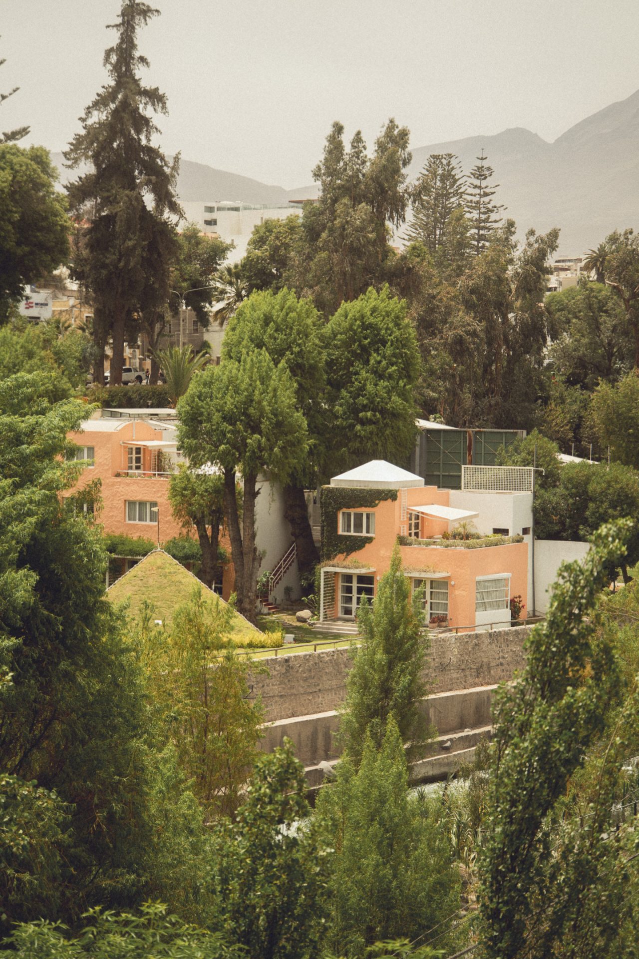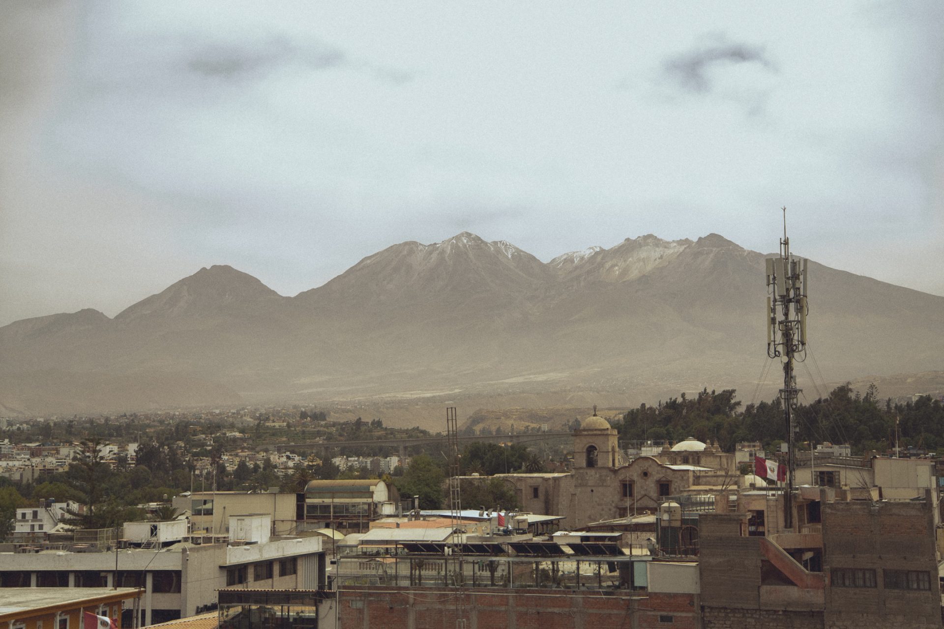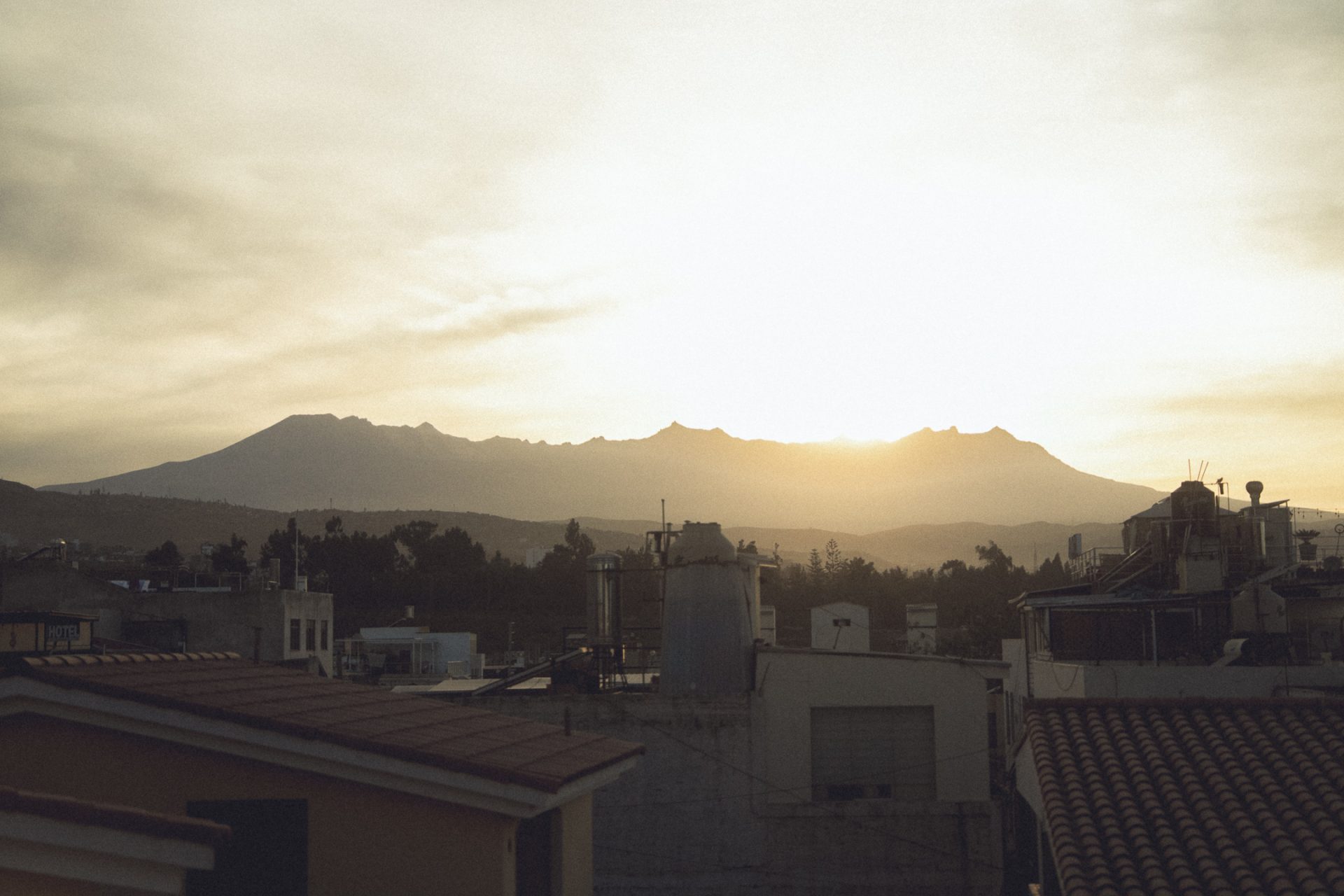 Nachdem ich fertig war, ging ich erst einmal wieder aufs Zimmer und recherchierte, was ich heute hier noch unternehmen konnte und was es in Ica bzw. Huacachina zu sehen gab. Ich packte außerdem schon einmal meine Rucksäcke und bereitete mich darauf vor, die Nacht im Bus zu verbringen. Da ich den ganzen Tag mit dem Kamerarucksack unterwegs gewesen war und nicht alles mitschleppen wollte, musste ich eine zusätzliche Tasche packen. Ich checkte aus und fragte, ob ich vom Dach des Hotels ein paar Fotos machen dürfte. Glücklicherweise wurde mir das erlaubt, jedoch hatte ich mir etwas mehr erhofft. Die Aussicht selbst war super, jedoch war es sehr diesig, sodass man die Berge kaum erkennen konnte. Außerdem herrschte auf dem Dach absolutes Chaos, überall lagen Gasflaschen, alte Toiletten und Betten herum. 🏨