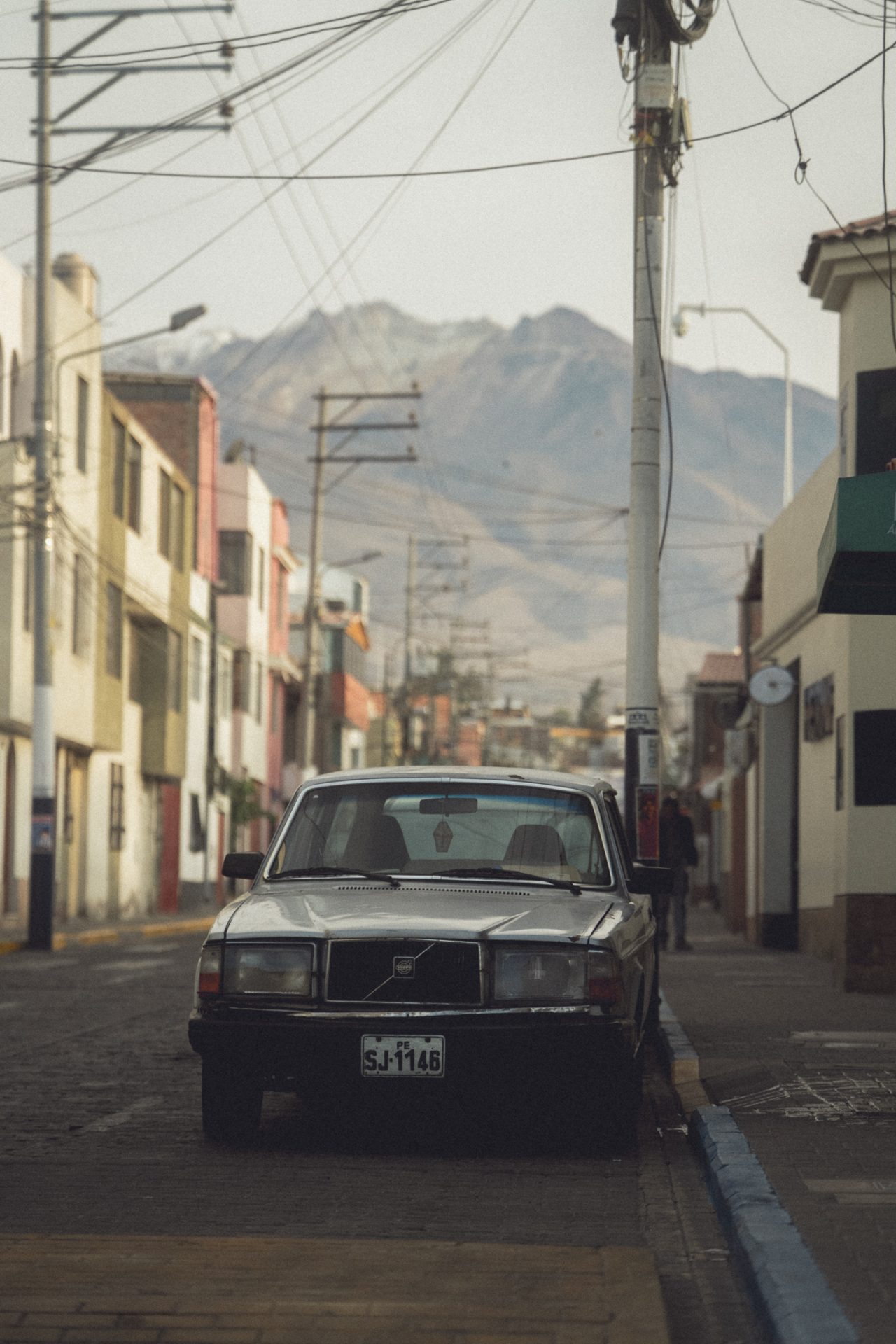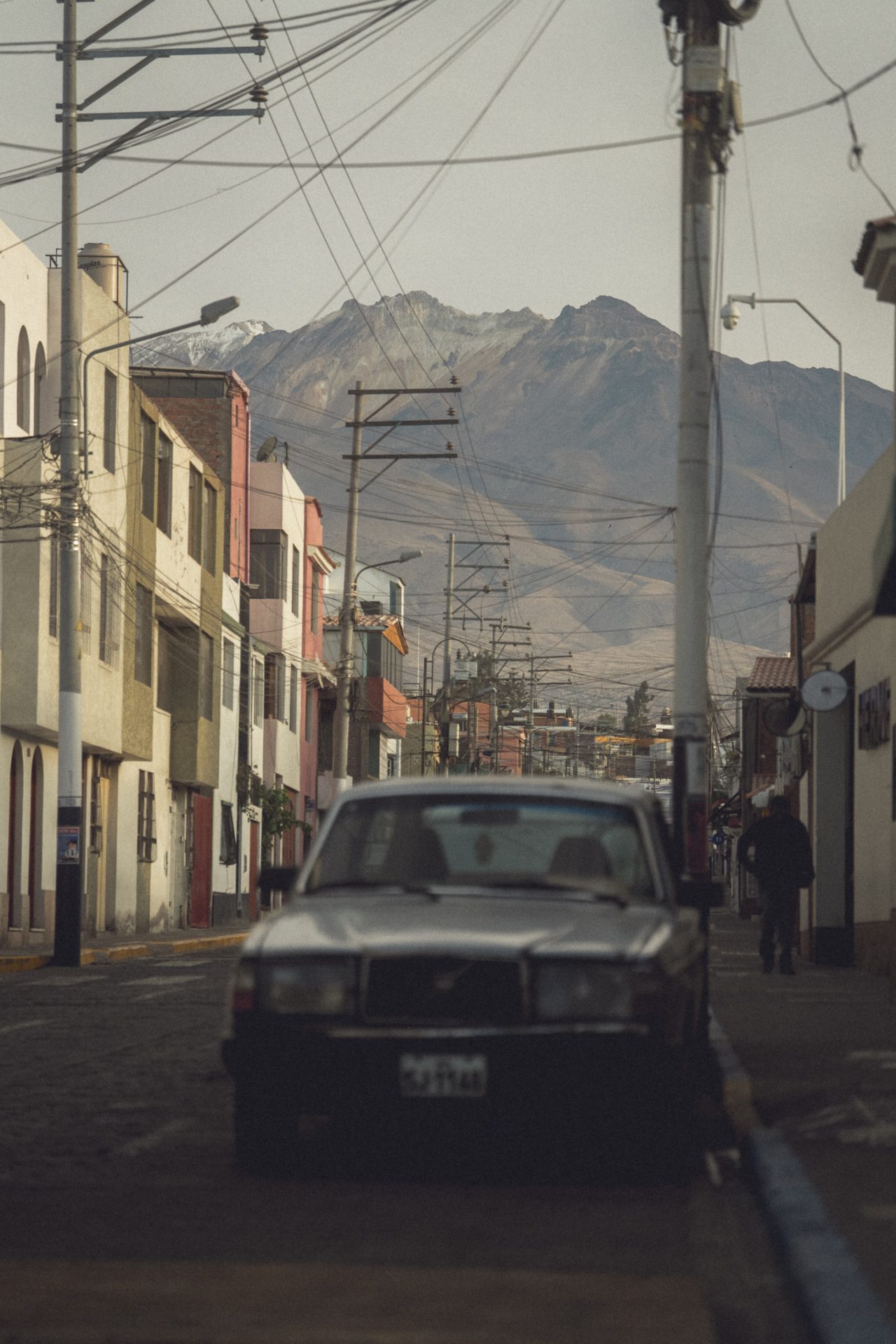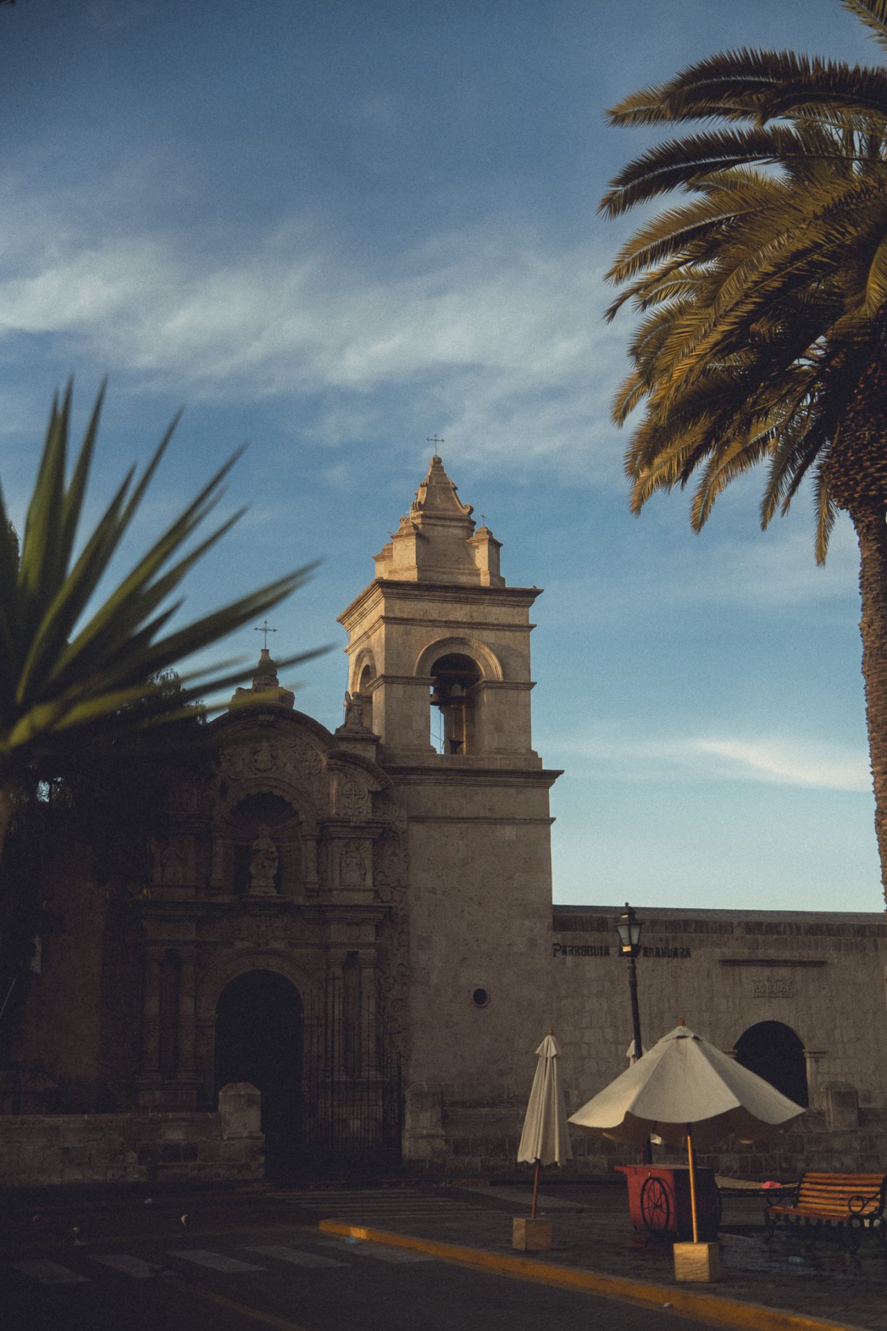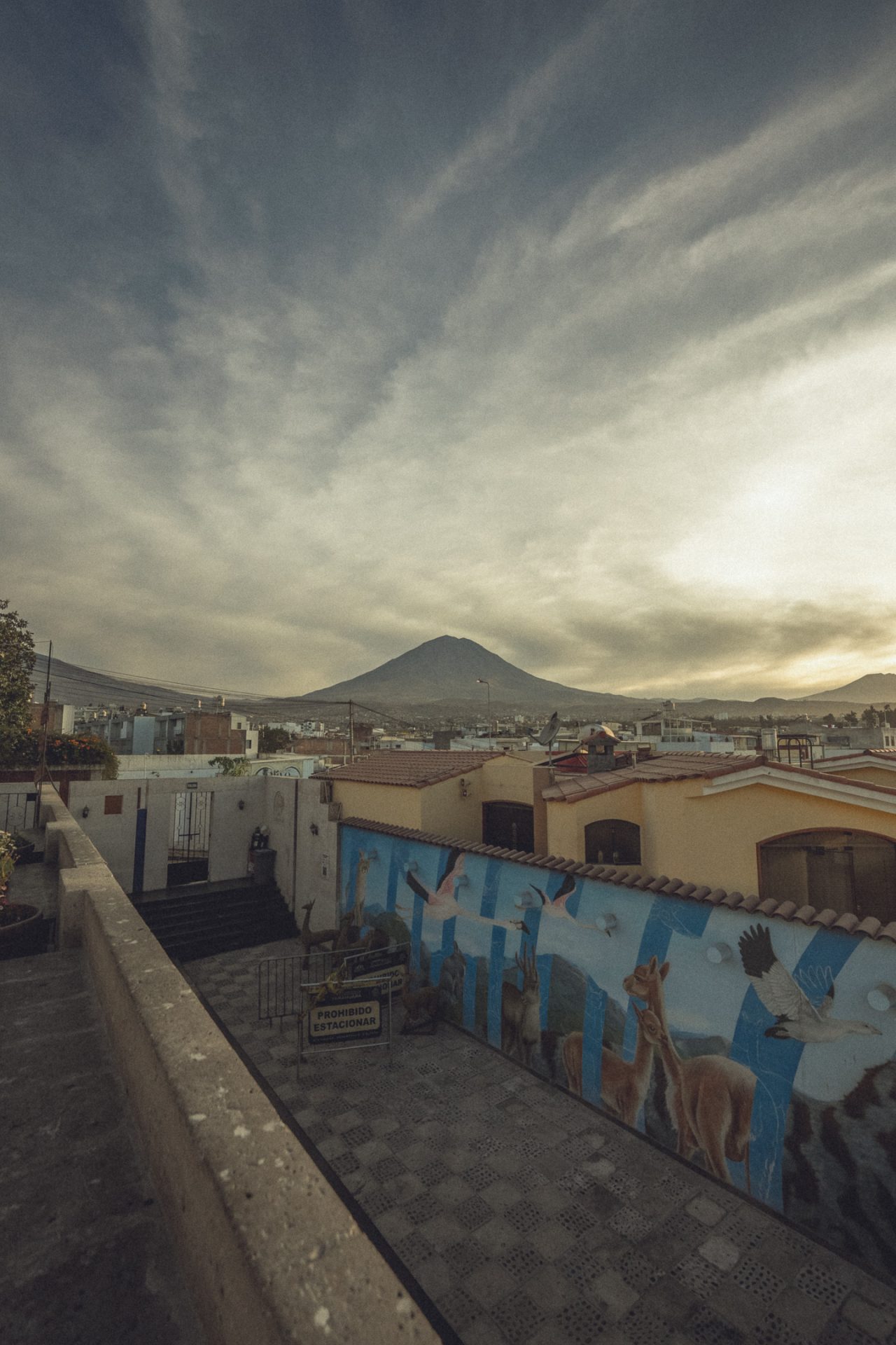 Da Arequipa außer einer sehr schönen Innenstadt nicht viel zu bieten hatte, machte ich mich einfach auf den Weg und schaute, wo ich vorbeikam. Ich versuchte, aus dem Kopf heraus erneut den Aussichtspunkt zu finden, an dem ich heute zum Sonnenuntergang die passenden Fotos schießen konnte. Doch das klappte so ganz und gar nicht, denn ich kam komplett woanders raus. Irgendwann schaute ich dann doch mal auf Google Maps nach und musste feststellen, dass ich inzwischen zehn Minuten weiter weg von meinem Ziel war, als ich vom Hotel aus gebraucht hätte. Aber das war nicht schlimm. Ich schlenderte bei der Hitze einfach noch ein bisschen durch die Stadt und kam schließlich wieder in der Altstadt an. Kurz vor dem Aussichtspunkt sah ich einen Sandwichladen, der Chicharrones verkaufte. Das wollte ich unbedingt noch probieren. Im Endeffekt ist es aber nichts anderes als knuspriger Schweinebauch. Ich bestellte mir also ein Sandwich und eine Inca Kola dazu. Ich packte mein iPad aus und schrieb los, um ein paar Blogeinträge nachzuholen. Das Sandwich war wirklich superlecker, und ich war froh, dass ich es probiert hatte! 🥙