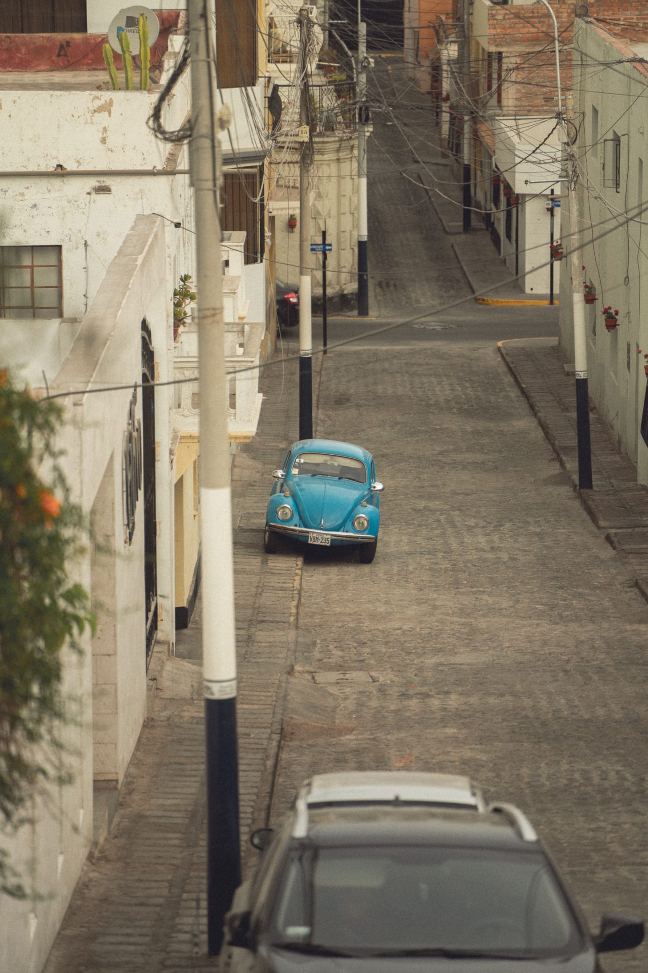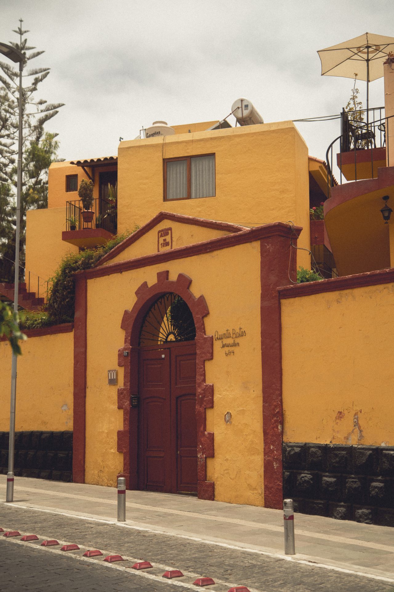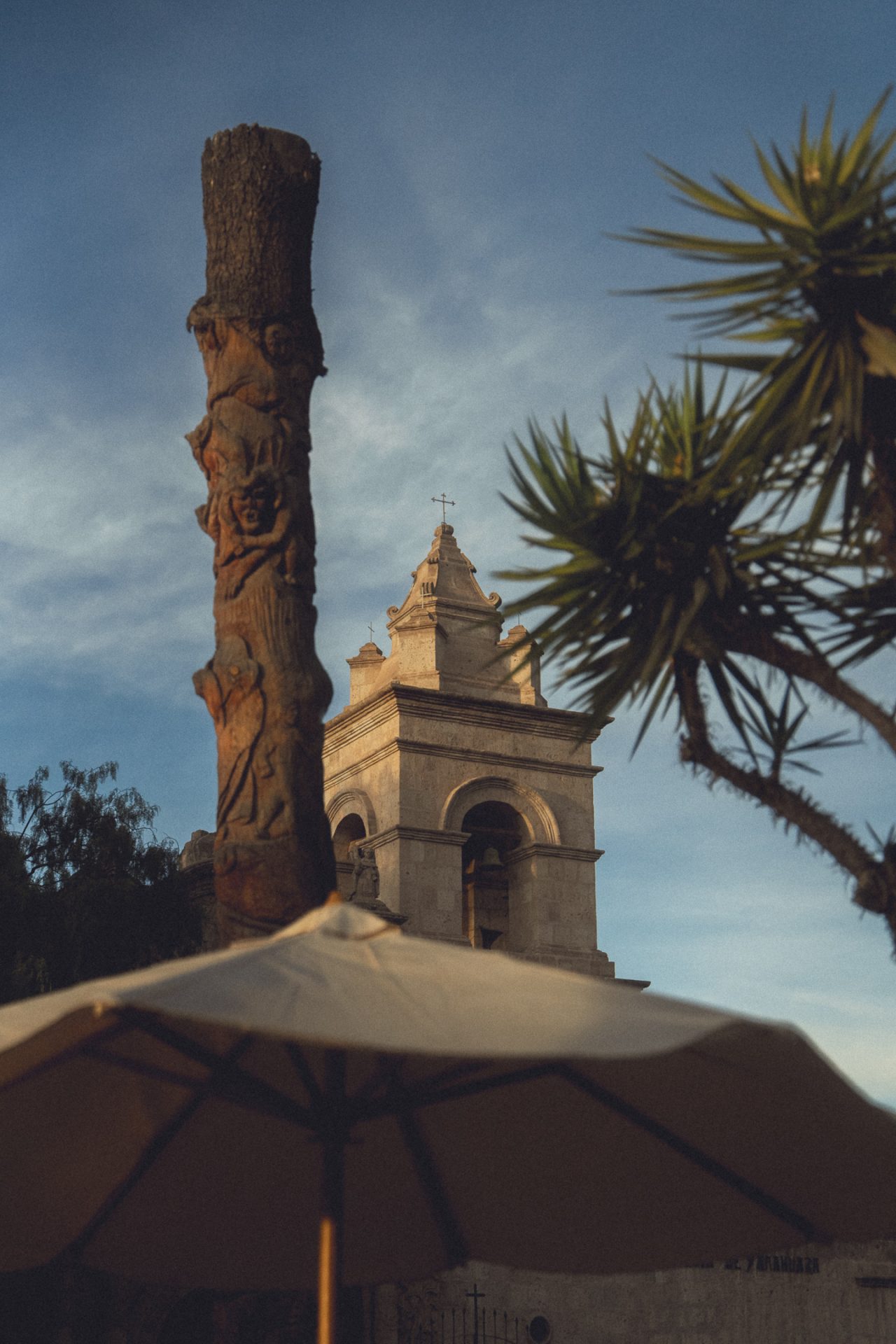 Da Arequipa außer einer sehr schönen Innenstadt nicht viel zu bieten hatte, machte ich mich einfach auf den Weg und schaute, wo ich vorbeikam. Ich versuchte, aus dem Kopf heraus erneut den Aussichtspunkt zu finden, an dem ich heute zum Sonnenuntergang die passenden Fotos schießen konnte. Doch das klappte so ganz und gar nicht, denn ich kam komplett woanders raus. Irgendwann schaute ich dann doch mal auf Google Maps nach und musste feststellen, dass ich inzwischen zehn Minuten weiter weg von meinem Ziel war, als ich vom Hotel aus gebraucht hätte. Aber das war nicht schlimm. Ich schlenderte bei der Hitze einfach noch ein bisschen durch die Stadt und kam schließlich wieder in der Altstadt an. Kurz vor dem Aussichtspunkt sah ich einen Sandwichladen, der Chicharrones verkaufte. Das wollte ich unbedingt noch probieren. Im Endeffekt ist es aber nichts anderes als knuspriger Schweinebauch. Ich bestellte mir also ein Sandwich und eine Inca Kola dazu. Ich packte mein iPad aus und schrieb los, um ein paar Blogeinträge nachzuholen. Das Sandwich war wirklich superlecker, und ich war froh, dass ich es probiert hatte! 🥙