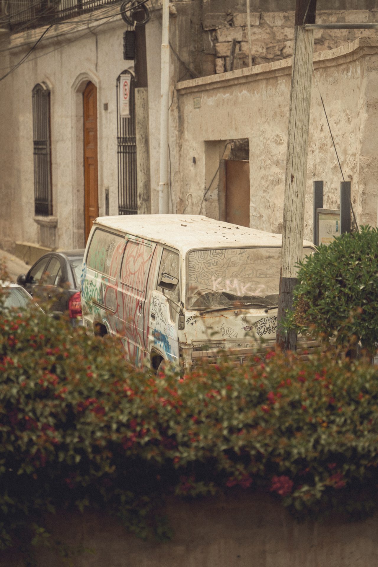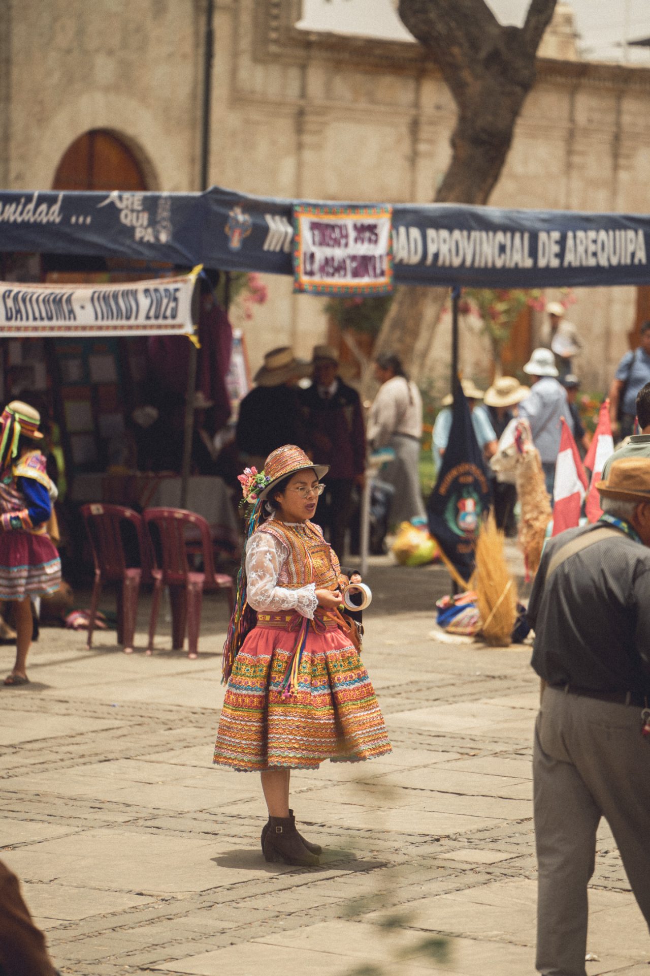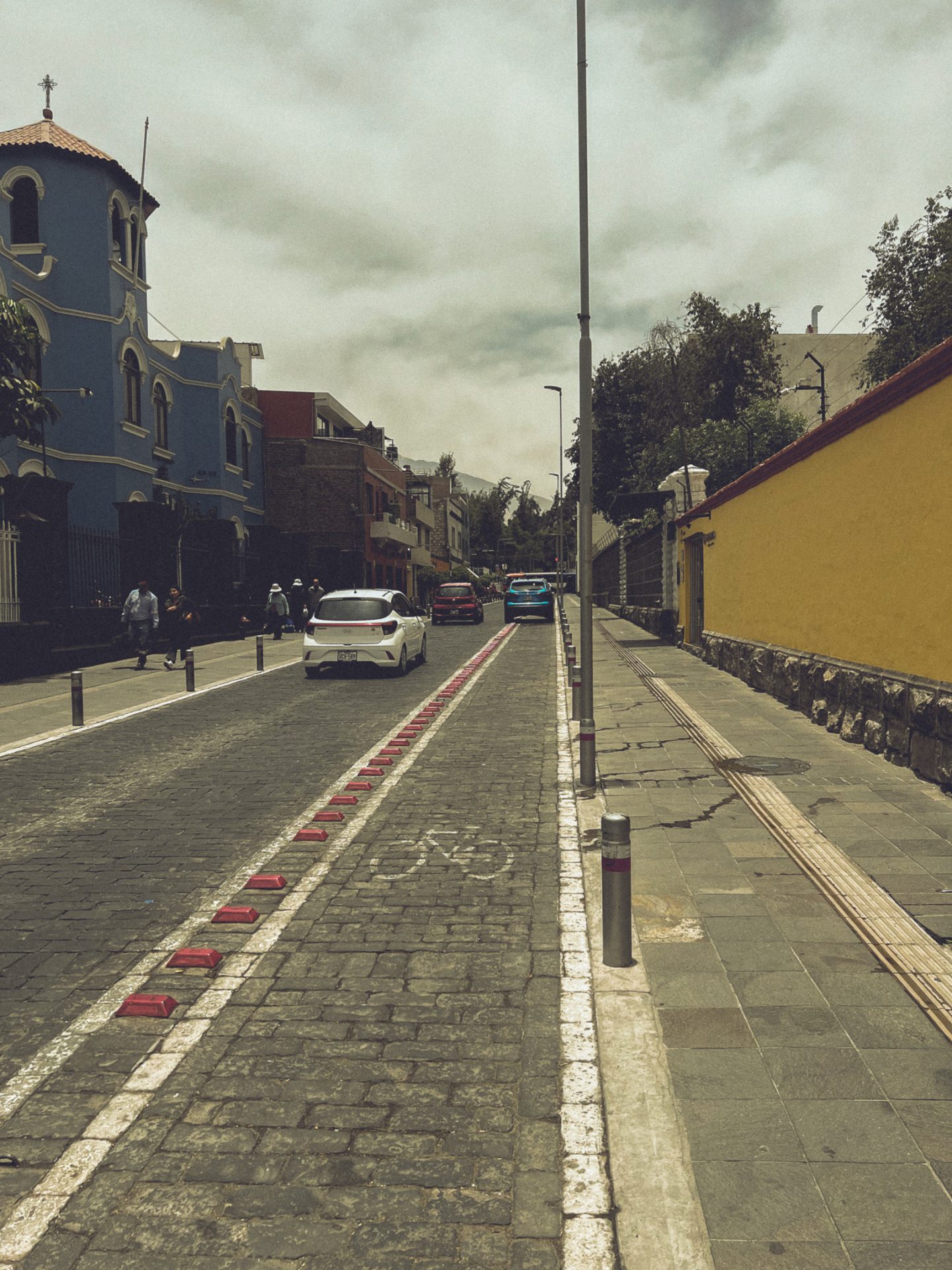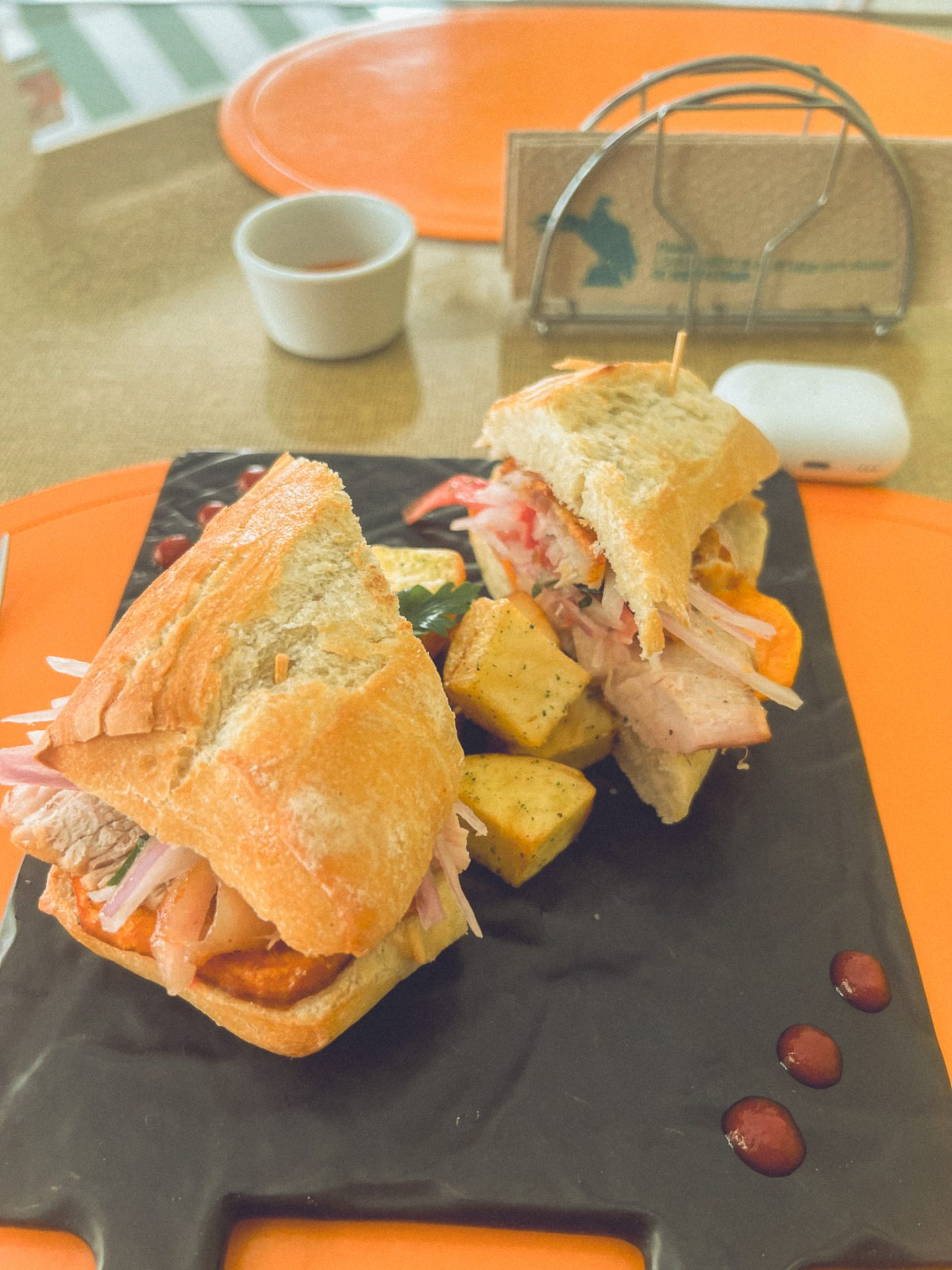 Da Arequipa außer einer sehr schönen Innenstadt nicht viel zu bieten hatte, machte ich mich einfach auf den Weg und schaute, wo ich vorbeikam. Ich versuchte, aus dem Kopf heraus erneut den Aussichtspunkt zu finden, an dem ich heute zum Sonnenuntergang die passenden Fotos schießen konnte. Doch das klappte so ganz und gar nicht, denn ich kam komplett woanders raus. Irgendwann schaute ich dann doch mal auf Google Maps nach und musste feststellen, dass ich inzwischen zehn Minuten weiter weg von meinem Ziel war, als ich vom Hotel aus gebraucht hätte. Aber das war nicht schlimm. Ich schlenderte bei der Hitze einfach noch ein bisschen durch die Stadt und kam schließlich wieder in der Altstadt an. Kurz vor dem Aussichtspunkt sah ich einen Sandwichladen, der Chicharrones verkaufte. Das wollte ich unbedingt noch probieren. Im Endeffekt ist es aber nichts anderes als knuspriger Schweinebauch. Ich bestellte mir also ein Sandwich und eine Inca Kola dazu. Ich packte mein iPad aus und schrieb los, um ein paar Blogeinträge nachzuholen. Das Sandwich war wirklich superlecker, und ich war froh, dass ich es probiert hatte! 🥙