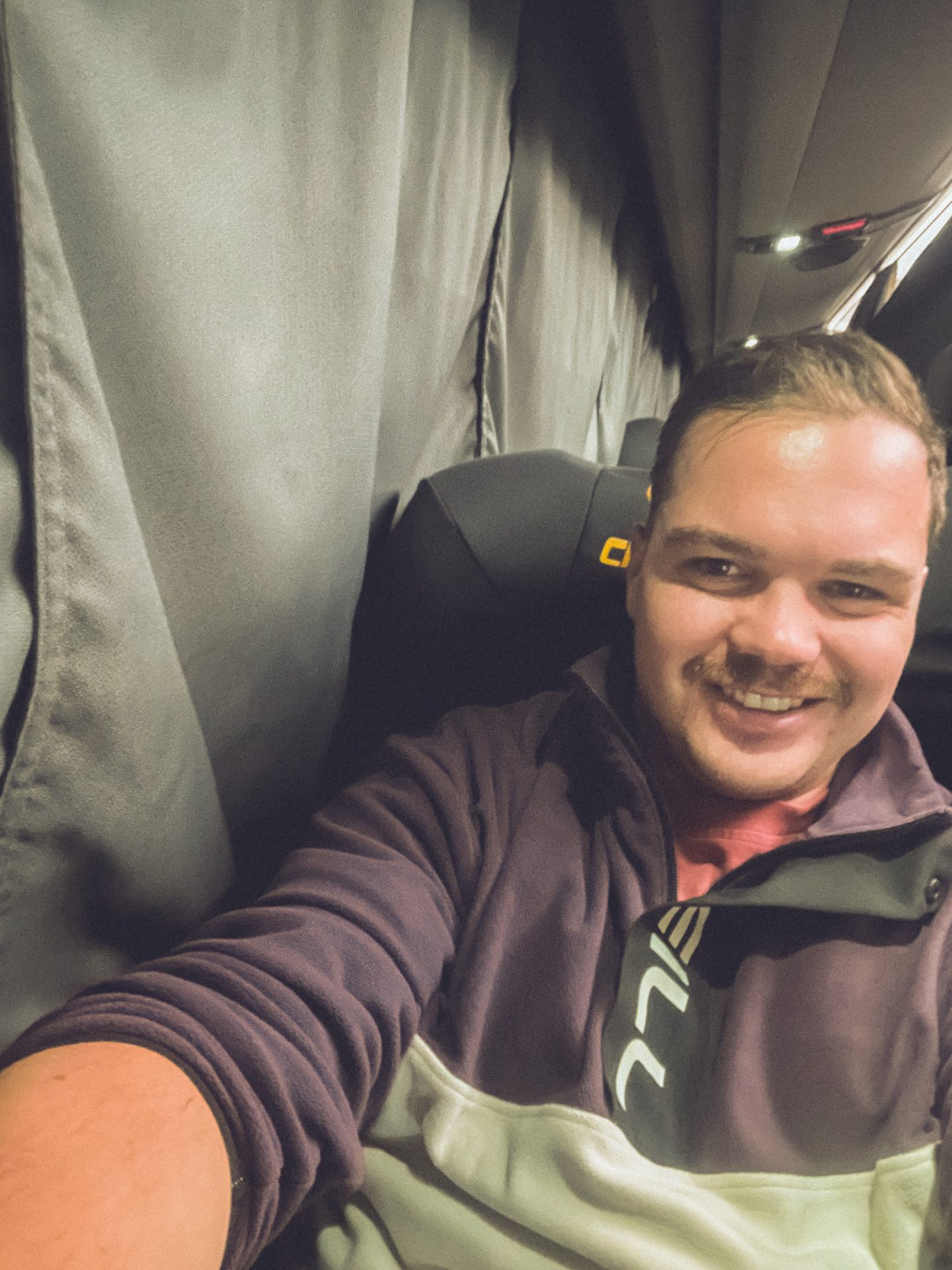 Ich war froh, dass ich etwas mehr bezahlt hatte, denn dadurch hatte ich eine Einzelkabine in der ersten Reihe und Sitze bzw. Betten, die sich komplett umlegen ließen. Nach der Horror-Busfahrt nach Sapa in Vietnam war ich etwas paranoid und wollte lieber auf Nummer sicher gehen. Außerdem gab es diesmal sogar eine Toilette im Bus. Was sollte also schiefgehen? 🤭
