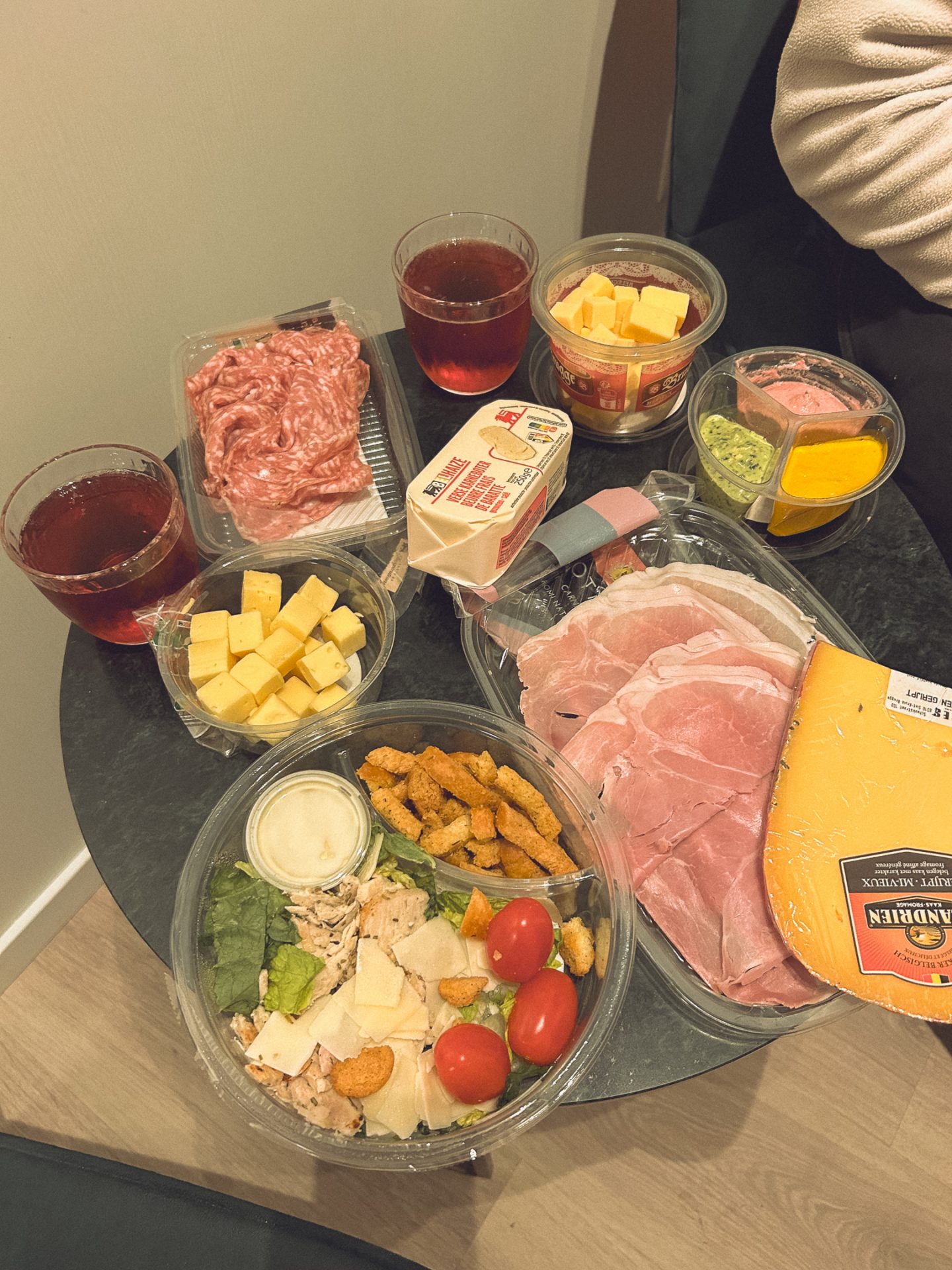 Für unser Abendessen deckten wir uns auf dem Rückweg im Delhaze mit einer köstlichen Brotzeit ein. Pünktlich zur deutschen Abendbrotzeit waren wir zurück im Hotel und genossen zusammen den Abend in unserem ruhigen Zimmer mit guter Musik, Kir Royal und Brotzeit. 🥨