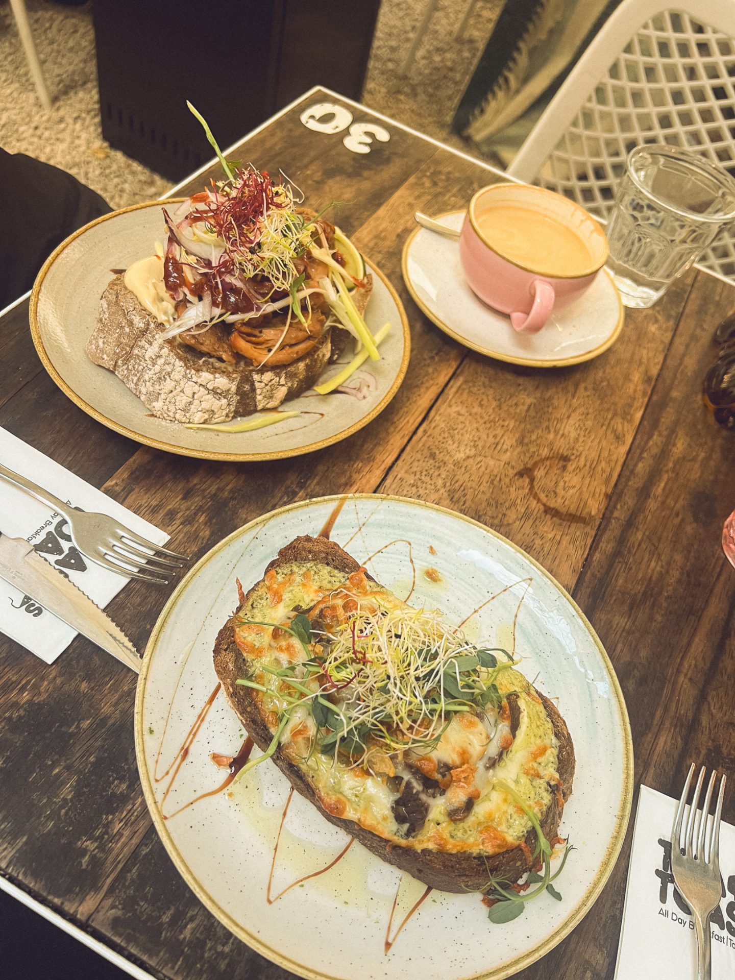Anders als geplant werden wir heute Brügge besuchen. Die Fahrt von Calzand aus dauert ca. 40 Minuten und es ist eine sehr bekannte aber kleine Stadt. Wir starteten um 10 Uhr im Hotel und waren zuerst auf dem Weg in unser Frühstückscafé „The Toast“. Dort wartete ein richtig leckeres Frühstück auf uns. Wie der Name schon verrät, gab es verschiedene belegte Toasts. Aber nicht einfach nur Weißbrot mit langweiligem Scheibenkäse, sondern richtig frisch gebackenes, dunkles Brot mit ausgefallenem Belag. Wir bestellten zuerst „The Take Bao“ im Asia-Style mit Hähnchen und Hoisin-Soße und „The Freshest“ mit Rind in Barbecue-Soße mit geschmolzenen Zwiebeln in Käse überbacken. Da wir noch nicht so richtig satt waren, bestellten wir noch „The Classic“. Fast wie zu Hause mit Avocado und Ei. 🥪