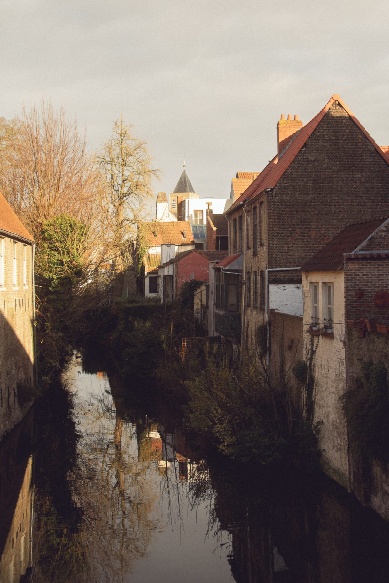 Als letzten Stopp für den Tag in Brügge gingen wir zum Minnewater. Hier gab es ein paar Bänke direkt am Ufer, wo wir unser Bier genossen und die letzten Sonnenstrahlen auskosteten. Von hier aus hatten wir noch einen Blick auf Poertoren und Sashuis.