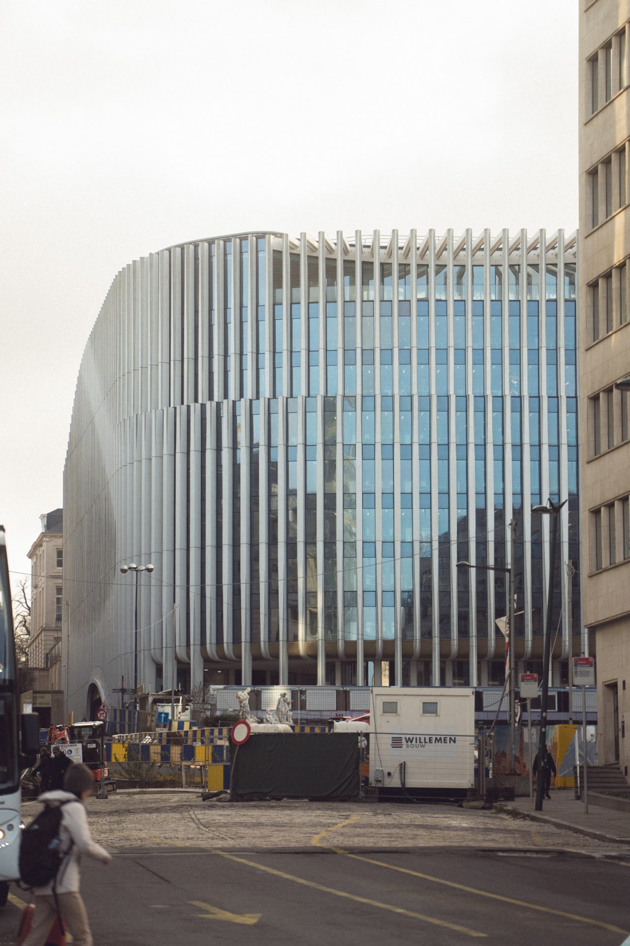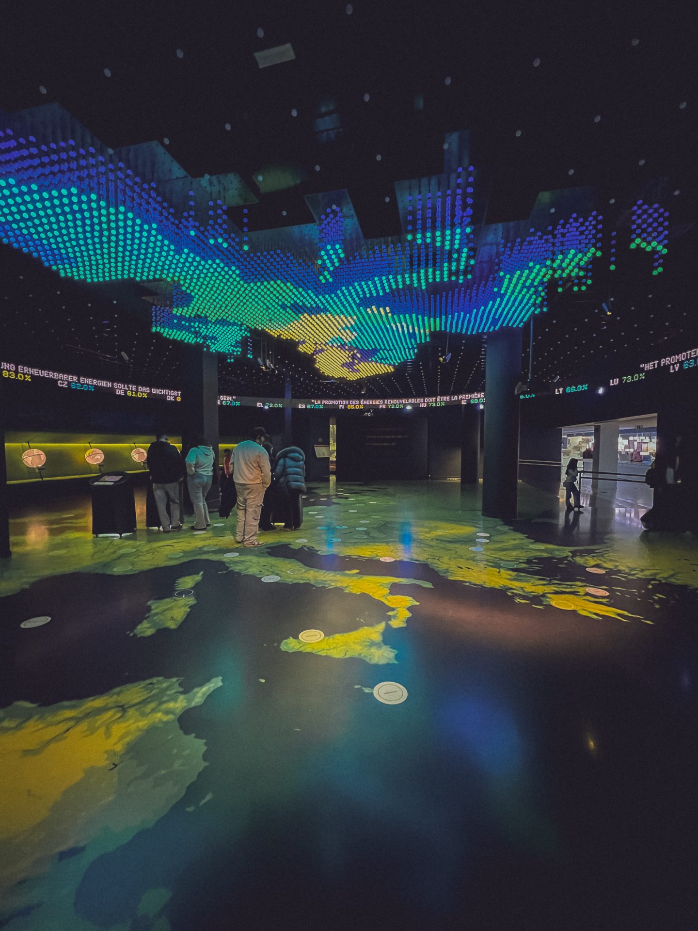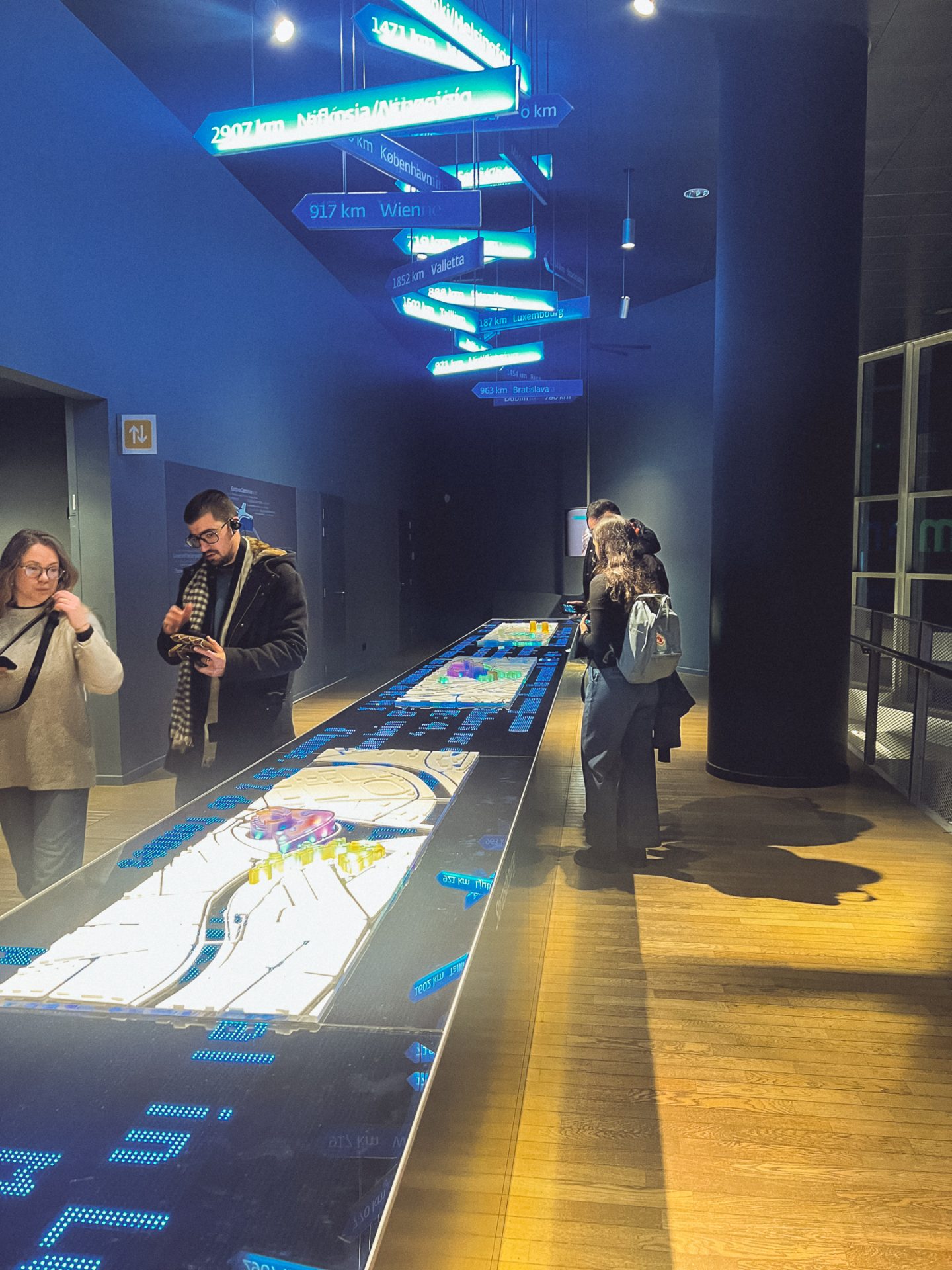 Als wir das erledigt hatten gings wie geplant weiter in das EU Viertel. Dort suchten wir uns eine Parkgarage und sind anschließend zu Fuß losgezogen. Wir gingen als erstes zum EU Parlament, das hatte jedoch heute komplett geschlossen – entgegen von Google Maps angaben. Naja, dann gings jetzt zum europäischen Rat, der hatte aber eine Stunde früher geschlossen als angegeben. Also blieb hier in der Umgebung nicht mehr viel außer das Parlamentarium. Ein Museum zu der europäischen Geschichte und Regierung, welches zum Glück bis 18:00 Uhr offen hatte und kostenlos ist. Wir sind also dort hin gelaufen, wurden nach einer Reservierung gefragt – die wir natürlich nicht hatten – und dann freundlich abgewiesen, da heute alle Slots belegt seien. Alsooooo haben wir hier praktisch gar nichts gesehen🤣 Bevor wir also wieder unsere Rückreise antreten wollte Jonas noch aufs Klo. Dafür musste er einmal durch die Sicherheitskontrolle. Während er dort war, kam die Dame vom Empfang nochmal zu Amelie und hatte gesagt, dass wir doch rein könnten. Jemand hatte wohl eine doppelte Reservierung durchgeführt und demnach waren noch zwei Plätze frei – Perfekt! 🏫