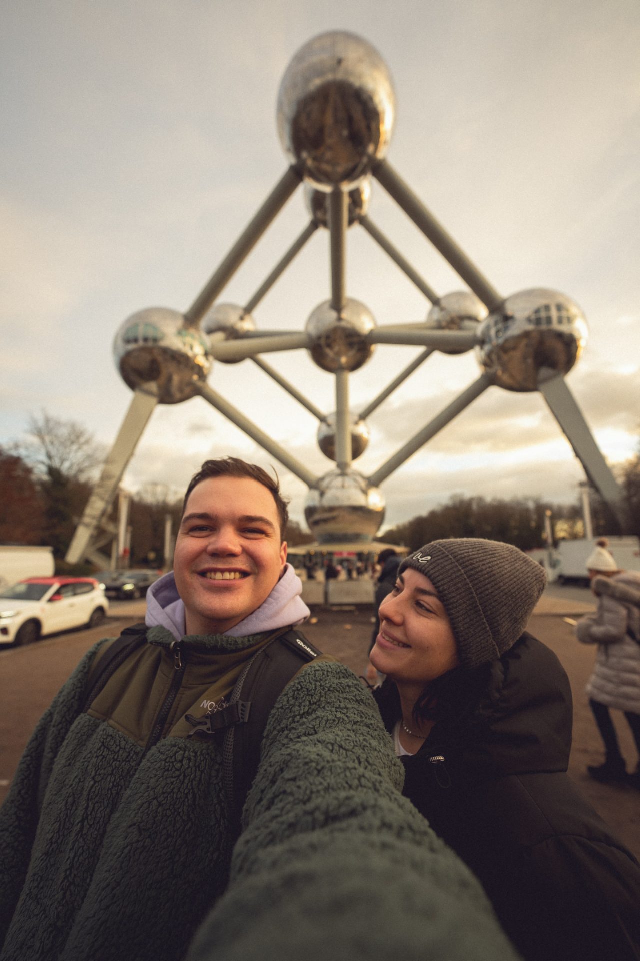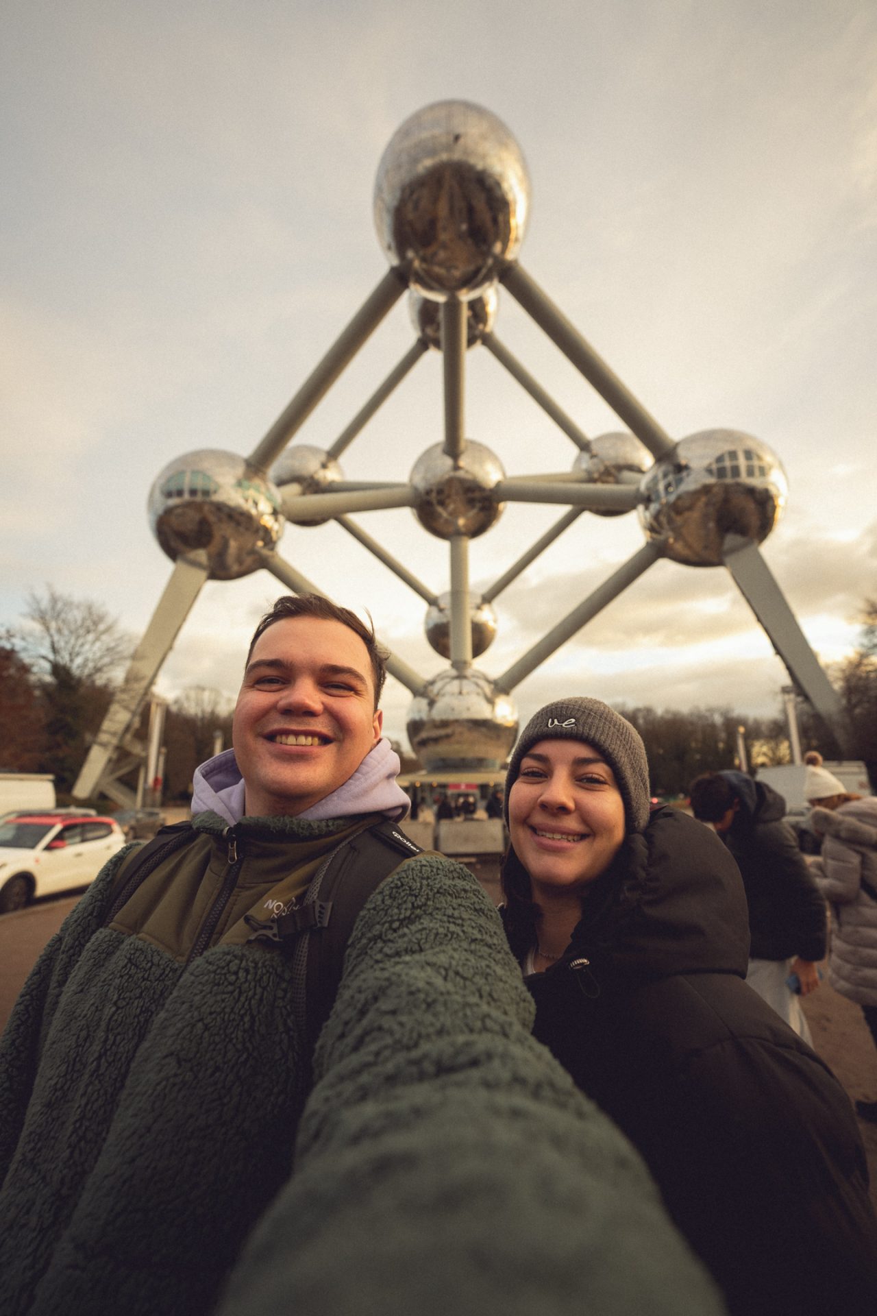 Wir dachten uns also: Egal, zurück zum Hotel! Dort Ausweise holen und dann mit dem Auto dort hin fahren. Wir holten uns zwei Zugtickets und ab gings zurück nach Diegem! Dort mit dem Auto zum Hotel, eine kurze Pipipause, eine kurze Bitte um den Roomservice, denn der war komischerweise bisher noch nicht da gewesen. Wir haben uns ins Auto geschwungen und dann doch nochmal kurzerhand dazu entschieden vorher beim Atomium vorbei zu fahren, damit wir ein paar Fotos machen konnten. Denn in der Silvesternacht, sind da logischerweise nicht viele entstanden. Das dauerte knapp 20 Minuten bis wir dort waren. Wir konnten kostenlos direkt davor parken wo gestern noch eine große Party war. 🪩
