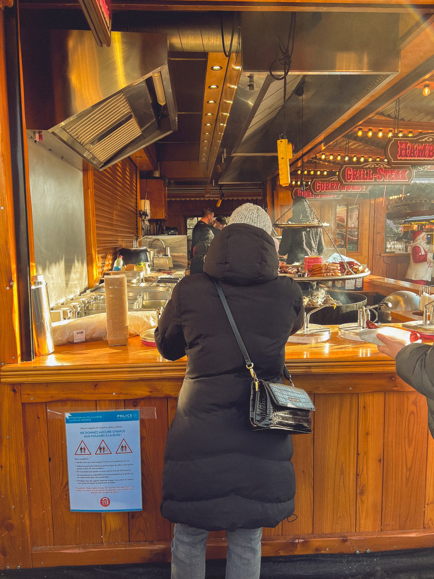 Damit hatten wir alle Sehenswürdigkeiten abgehakt und beschlossen, noch einmal ins Zentrum zu gehen, um auf dem Christkindlmarkt etwas zu essen. Auf dem Christkindlmarkt Nr. 4, wo es sogar eine riesige Rodelbahn gab, gab es leider nur das Standardessen, weswegen wir zum Hauptmarkt weitergingen. Hier gab es alles, was unser Herz begehrte. Zuerst gab es Spätzle aux Laudrins mit Carbonara-Sauce und extra Parmesan. Weil wir noch nicht genug hatten, gingen wir wieder zum Kleinen Markt, in der Hoffnung, er wäre nicht ganz so überlaufen. Dort gab es noch einen Cheeseburger mit Bacon und zur Nachspeise Churros mit Nougatsauce und übrigens noch mehr Menschen wir auf dem großen Markt. 🍔