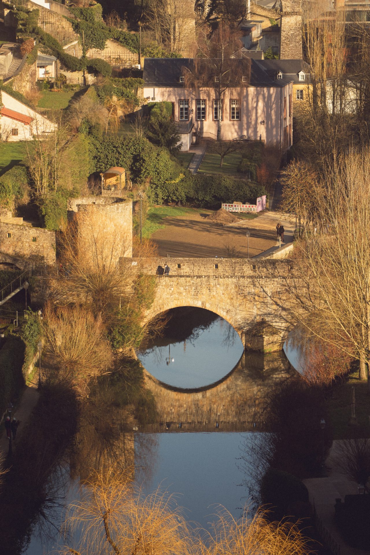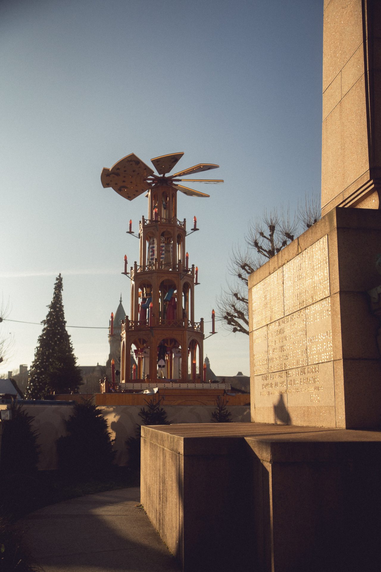 Wir erblickten auf dem Christkindlmarkt schon eines der größten Wahrzeichen Luxemburgs, die Adolph-Brücke. Die Brücke aus dem 20. Jahrhundert lag über einem schönen Park und verband früher die beiden Stadtgebiete miteinander. 🌉