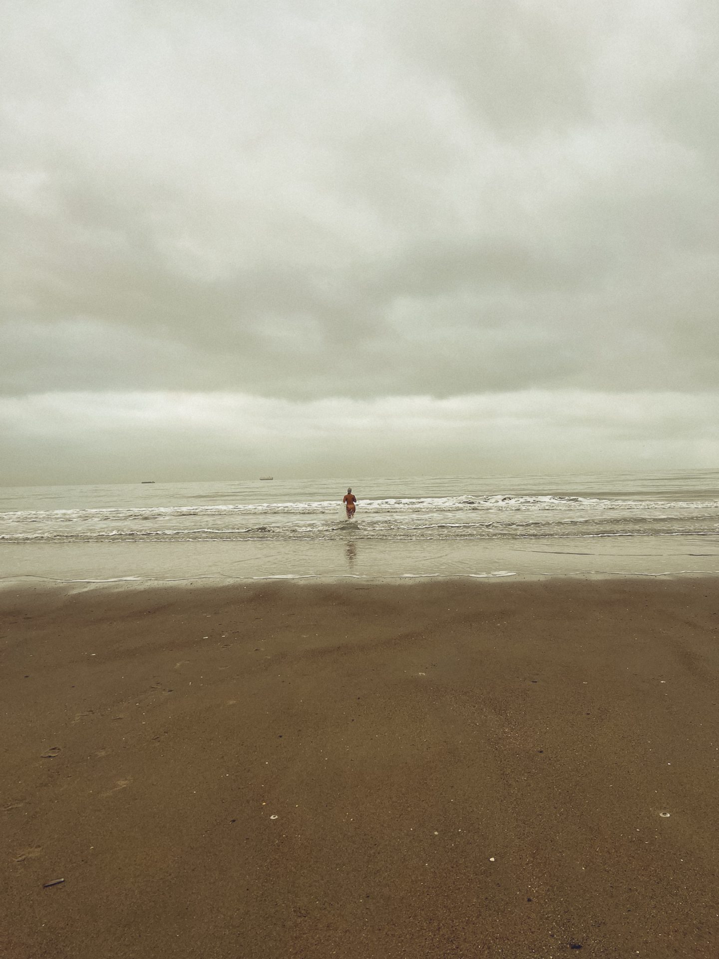 Dort angekommen sind wir direkt auf dem Grenzstreifen zwischen Belgien und den Niederlanden zum Meer gelaufen und kamen dem kalten Wasser immer näher. Wir mussten bereits, um direkt an die Küste zu kommen, ein paar Mal durch das eiskalte Wasser laufen und bekamen so einen Vorgeschmack. Unsere Füße sind dort schon fast eingefroren und taten dermaßen weh, dass sie komplett taub waren und kein Gefühl mehr hatten. Trotzdem wollten wir nach wie vor ins Meer springen und gingen weiter, bis wir endlich an der Küste ankamen, wo weit und breit kein Mensch mehr zu sehen war. 🌊