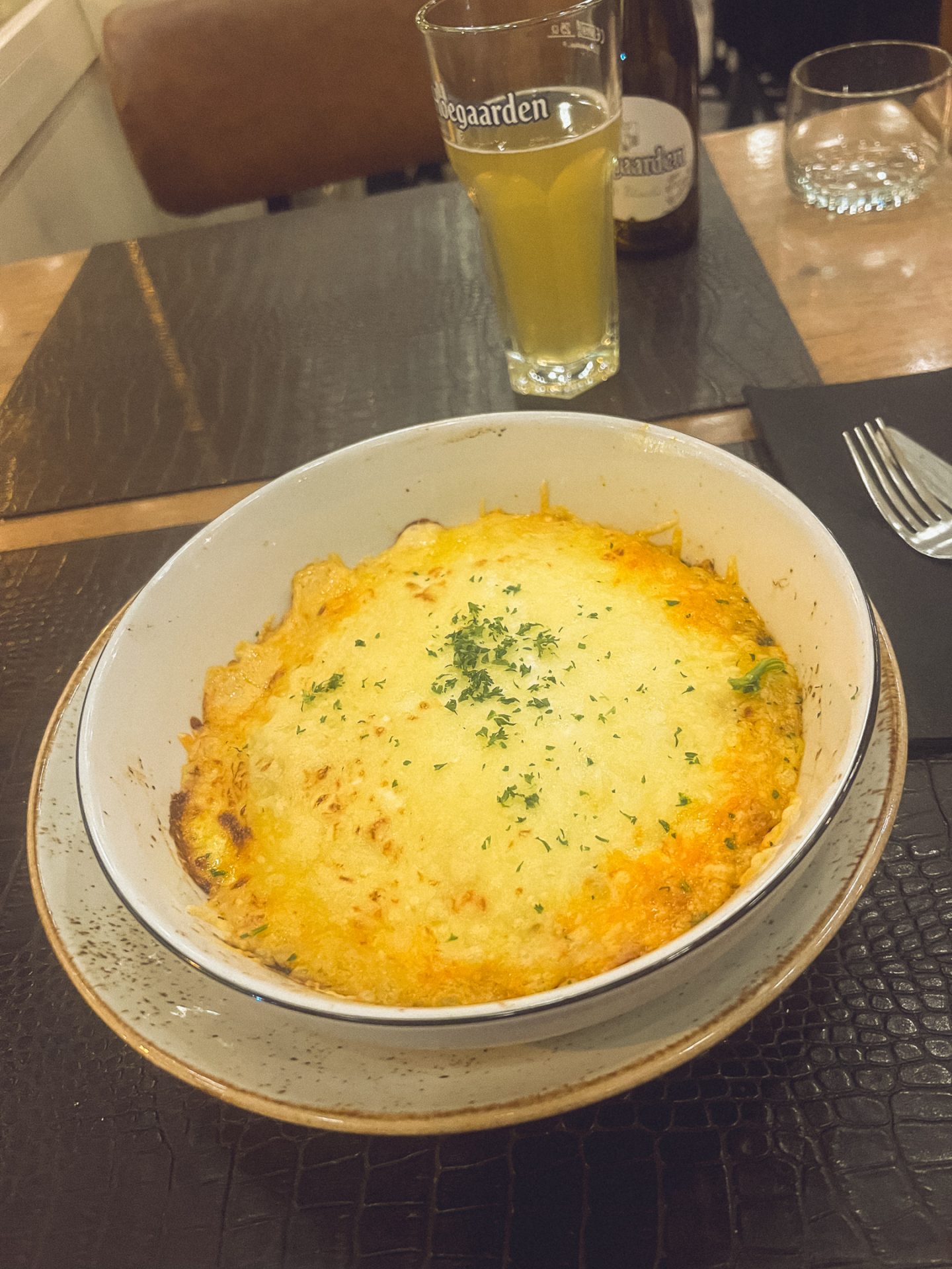 Nach ca. 20 Minuten Autofahrt nach Knokke-Heist kamen wir im Restaurant „The Butler“ an. Den Preisen nach zu urteilen, öffnete uns hier bereits ein Butler die Tür und brachte uns zu goldenem Tisch. Eigentlich war der Plan, hier klassisch belgisch zu essen, aber die Preise dafür überstiegen dezent unser Budget zudem auch die Speisen so extra vagant waren, dass wir bereits wussten sie würden uns eh nicht schmecken. Somit fiel die Wahl auf Lasagne und Spaghetti Bolognese mit Hoegaarden und Sarti Spritz. Auf jeden Fall eine gute Wahl, denn es schmeckte alles sehr lecker vor allem das Dressing von unserem Beilagensalat. Wir bezahlten dennoch recht schnell – packten unser leuchtendes Ei ein und sind wieder zurück ins Hotel gefahren.